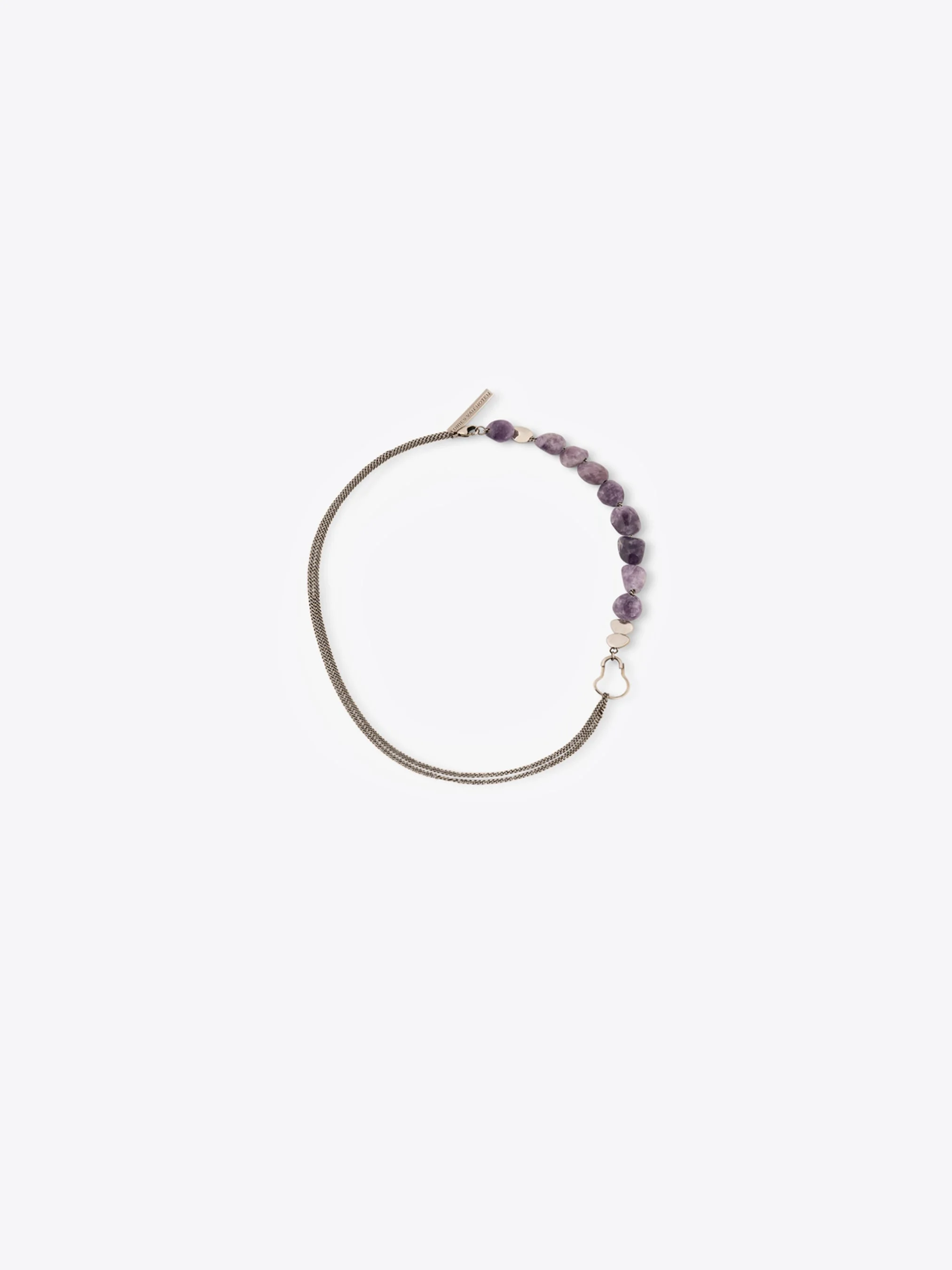 Handmade thin chain bracelet with semi-precious natural stones. DETAILS - 50% Semi-Precious Stones, 50% Brass. - Handmade. Logo plaque. Clasp closure. - Ref: 252-028208-092