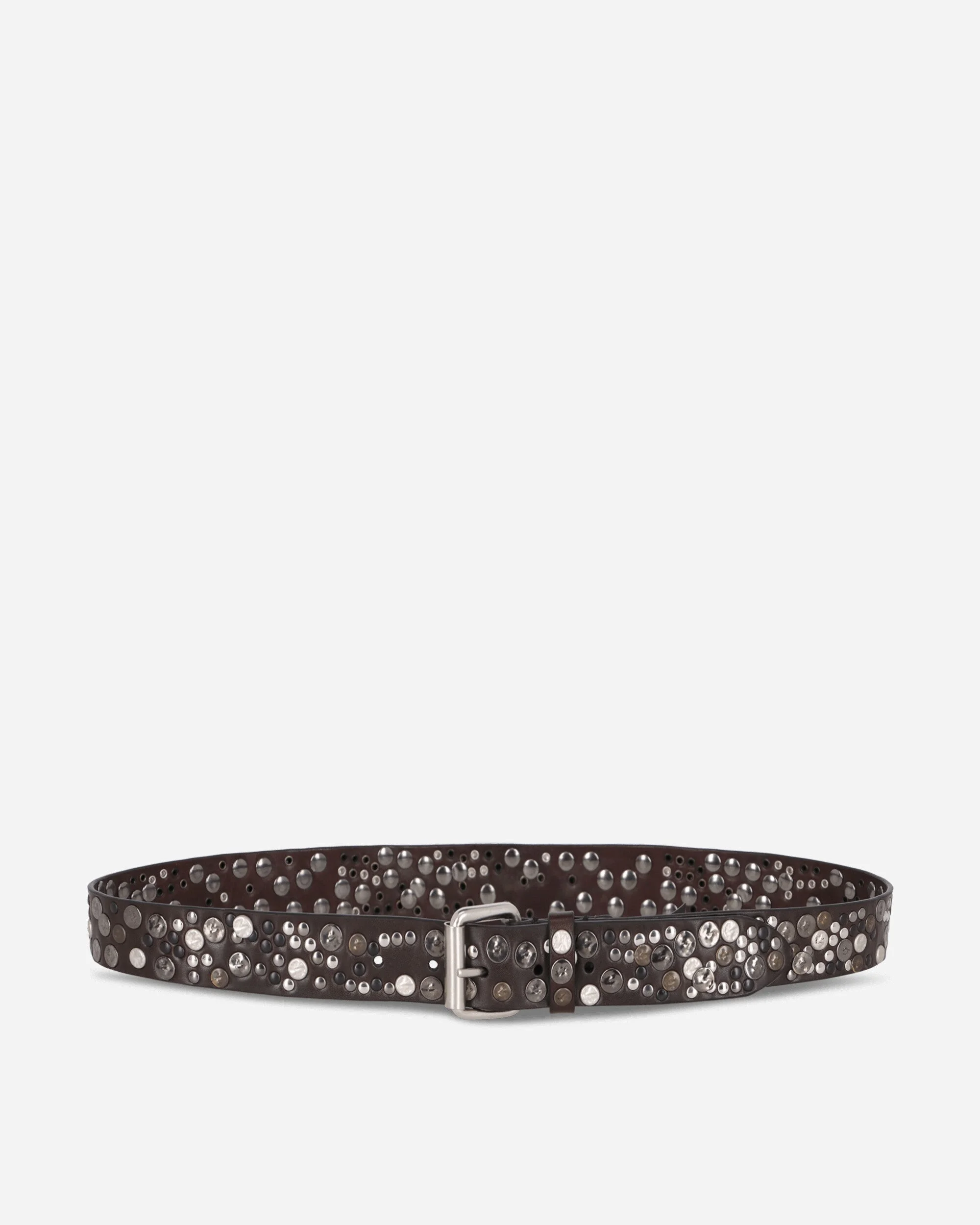 Dries Van Noten Studded Leather Belt Dark Brown The latest Dries Van Noten collection is a spirited lineup of classic tailoring and youthful style, playing between formal and casual, with lavish embroideries on sporty silhouettes. Classic belt in leather, with allover metal studs. - 100% Leather - Buckle Closure - Eyelets and Studs Detailing - Made in Italy - Style Code: 261-021408-0105 704