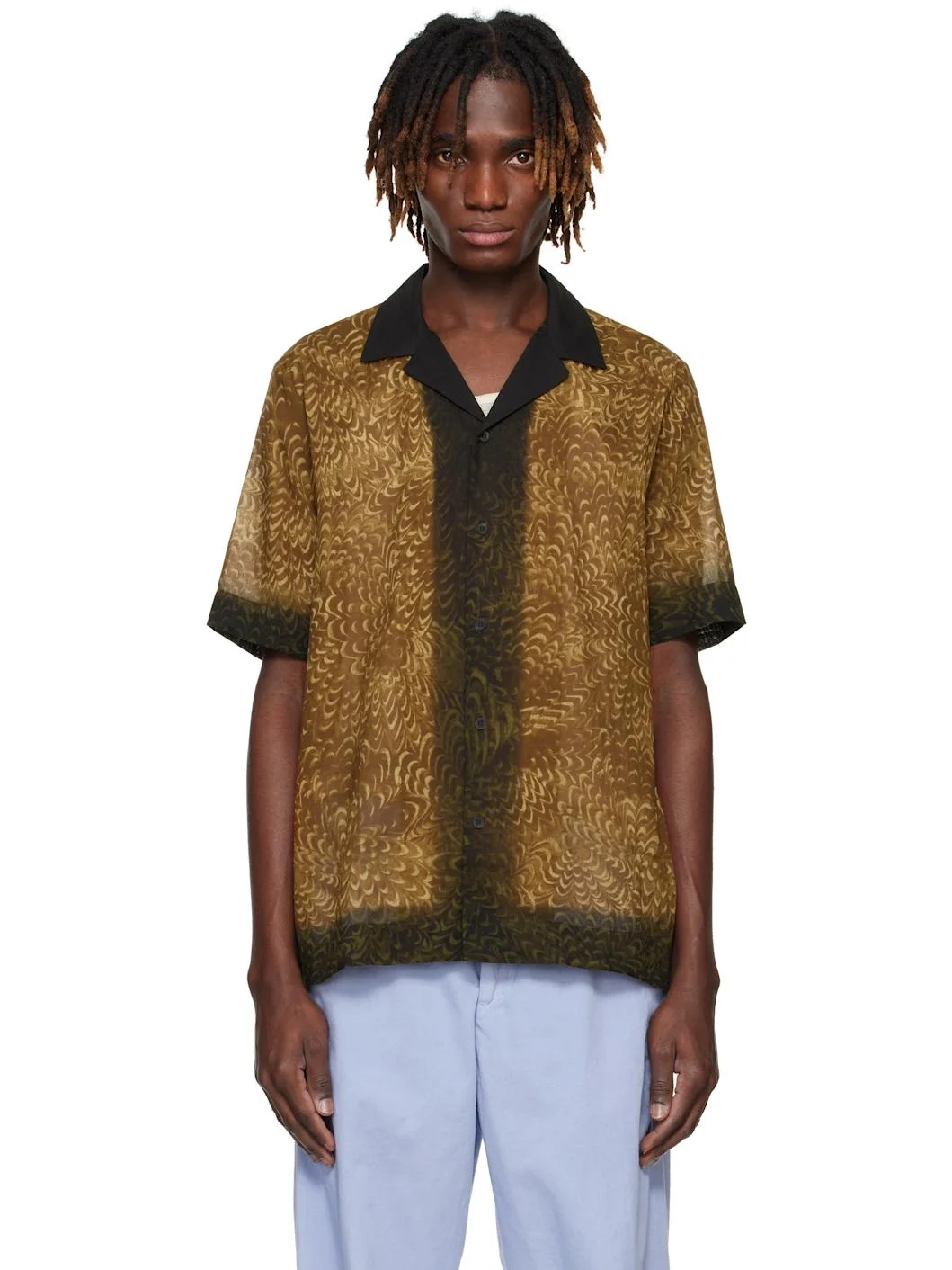 Sheer cotton voile shirt. Graphic pattern printed throughout. · Open spread collar · Button closure · Gradient printed at placket, hem, and cuffs Supplier color: Bronze 100% cotton. Made in Tunisia 251358M192083