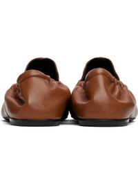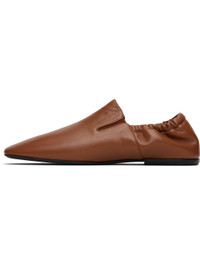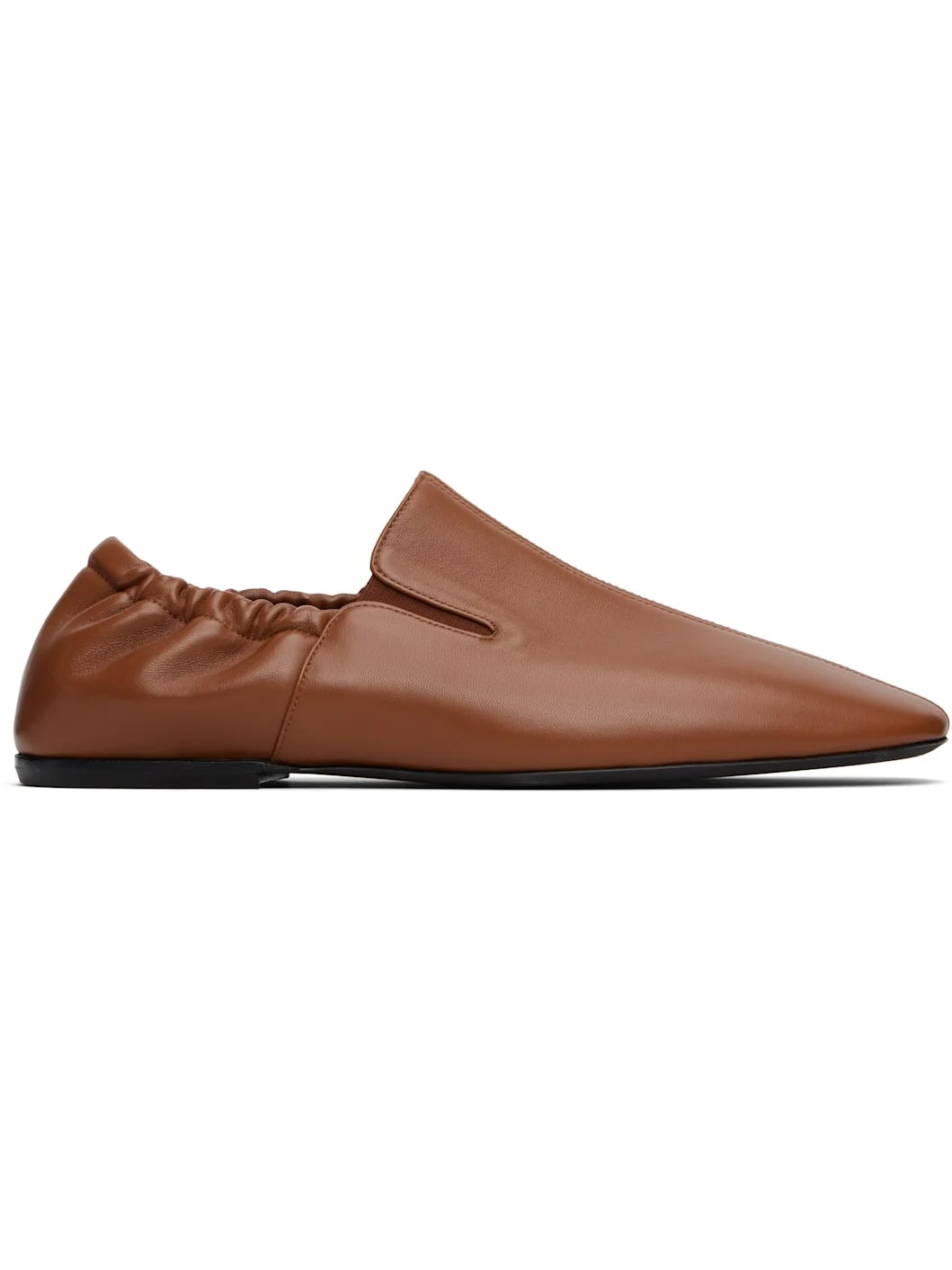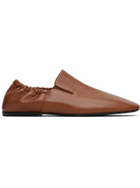 Grained leather loafers. · Square toe · Central seam and elasticized gussets at vamp · Elasticized collar · Stacked leather heel · Leather sole with rubber injection Supplier color: Tan Upper: leather. Sole: leather, rubber. Made in Italy 251358M231017