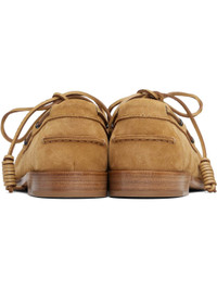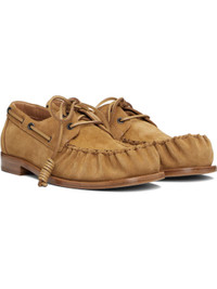Suede boat shoes. · Moc toe · Lace-up closure · Pinched seam at heel counter · Buffed leather lining · Stacked leather heel with rubber injection · Leather sole with rubber injection Supplier color: Camel Upper: leather. Sole: leather, rubber. Made in Italy 252358M231002