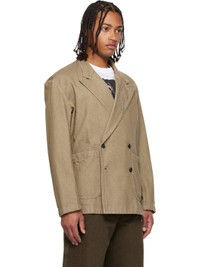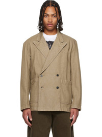 Non-stretch denim blazer. · Fading throughout · Peaked lapel · Double-breasted button closure · Patch pockets at waist · Unlined Supplier color: Stone 100% cotton. Made in Tunisia 252358M195000