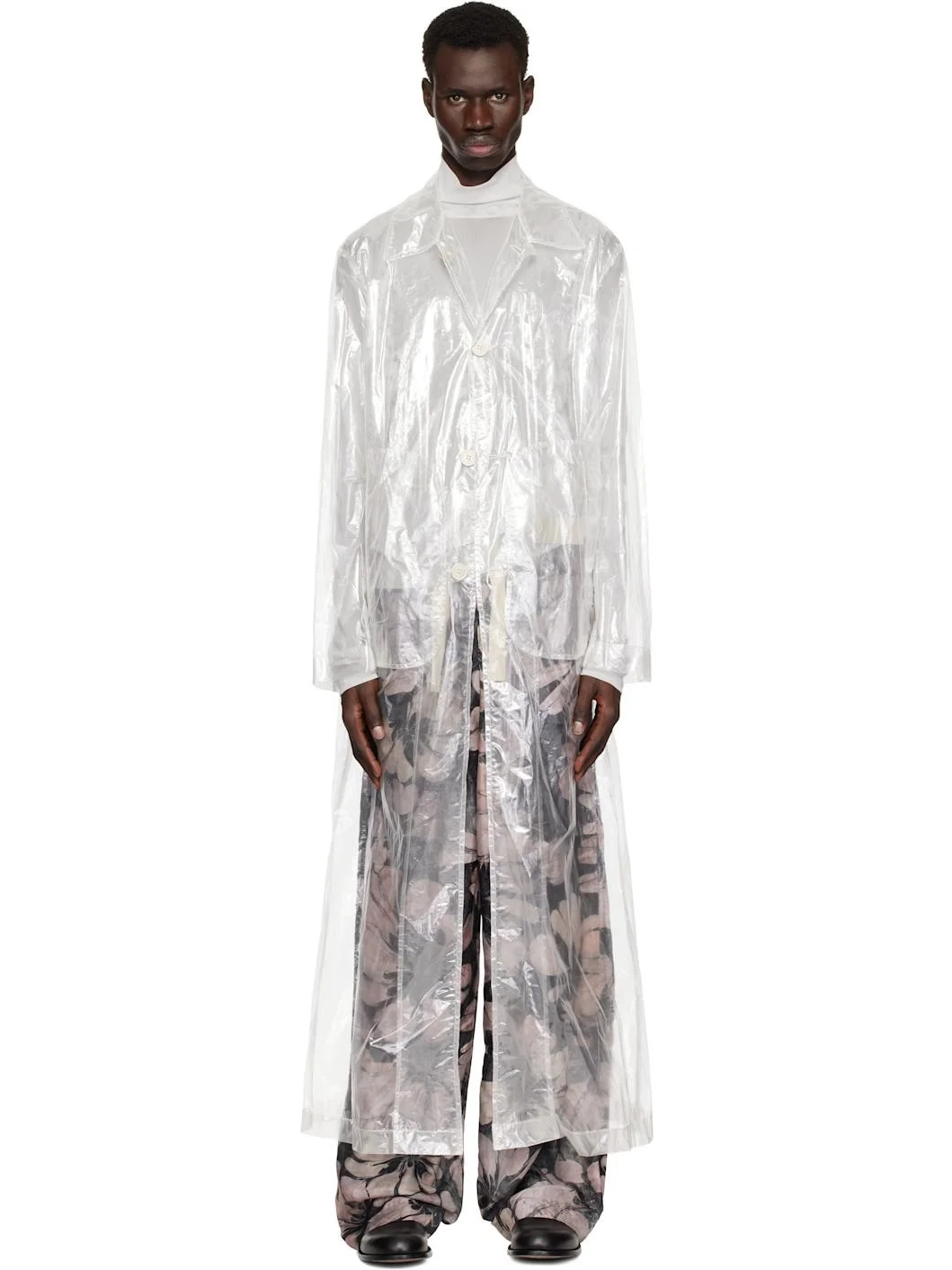 Transparent nylon vinyl coat. · Spread collar · Button closure · Welt pockets · Vent at back hem Supplier color: Transparent 100% polyamide. Made in Hungary 251358M176010