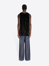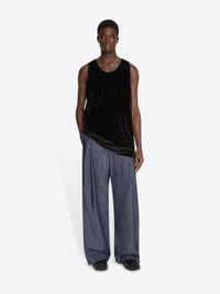 Tight fit tank top in crushed velvet jersey. DETAILS - 94% Polyester, 6% Polyurethane Fiber. - Tight fit. Sleeveless. - Ref: 252-021131-2329 SIZE AND FIT Model is 189 cm / 74.5 inches and wears size M.
