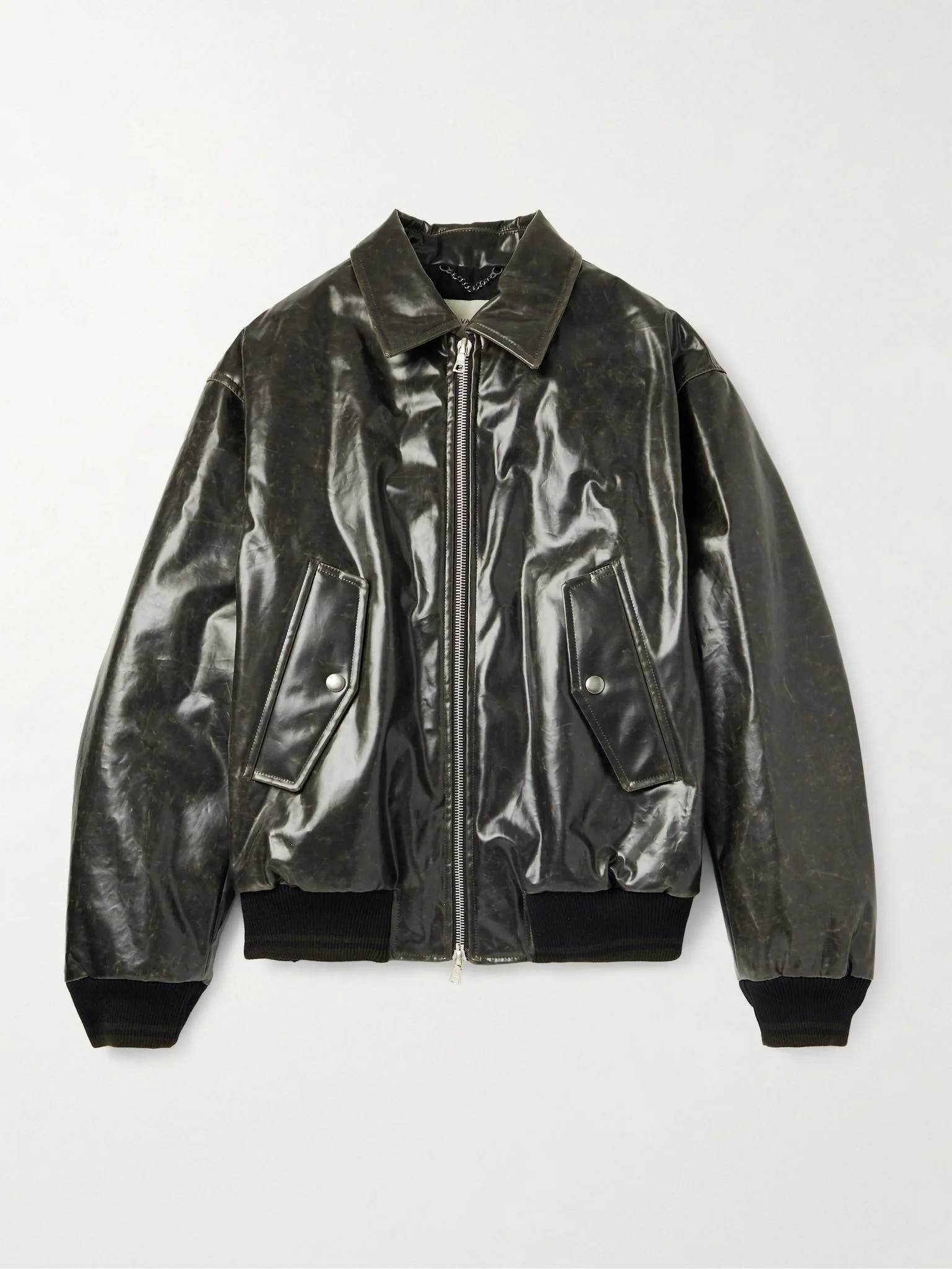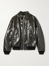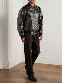 Coated Cotton-Blend Bomber Jacket Black