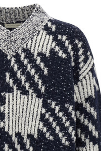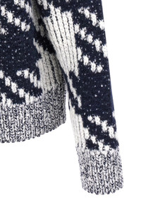 cod. 2520212382726001 Macao' wool blend sweater with jacquard graphic pattern, V-neck, long cuffed sleeves and dropped shoulders. Color: White/Black Size & Fit: true to size fit Composition: 63% wool 30% alpaca wool 7% polyamide Made in: Belgium