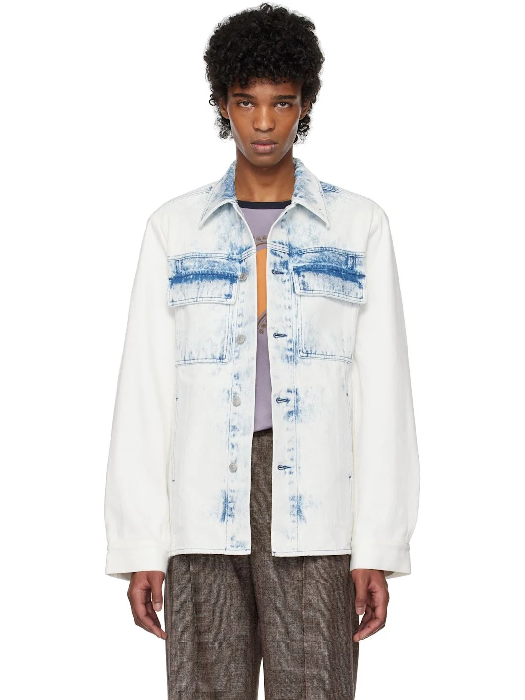 White & Blue Acid Wash Denim Jacket