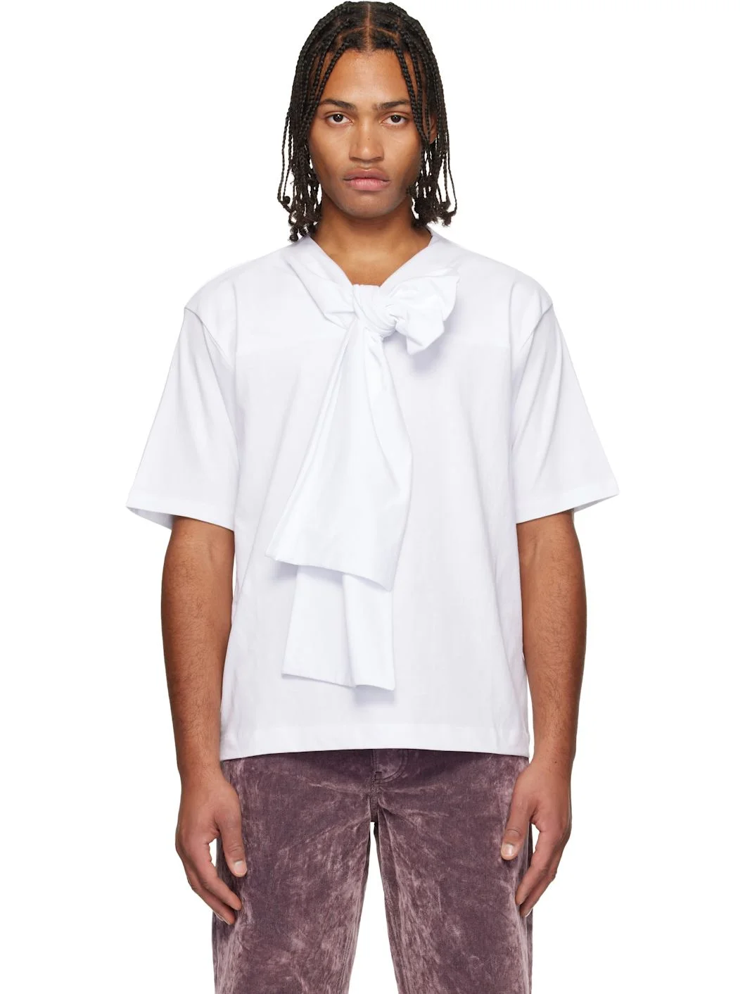 Heavyweight cotton jersey T-shirt. Self-tie bow accent at V-neck. Supplier color: White 100% cotton. Made in Turkey 252358M213014