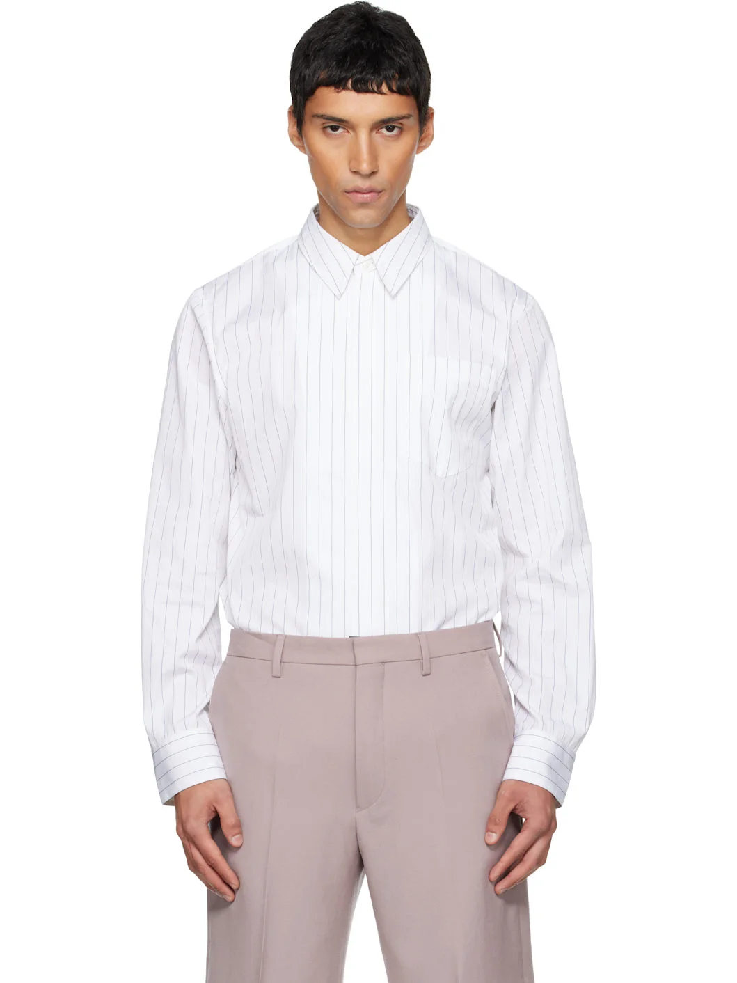 Cotton poplin shirt. · Stripes throughout · Spread collar · Concealed zip closure · Patch pocket at chest · Adjustable buttoned barrel cuffs Supplier color: Navy 100% cotton. Made in Hungary 252358M192064