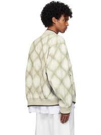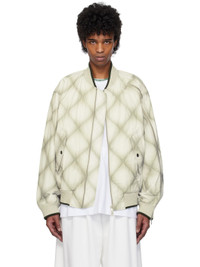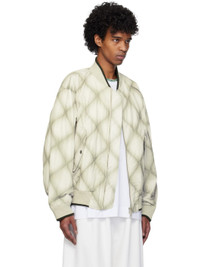 Padded and quilted polyester- and cotton-blend duck canvas bomber jacket. Gradient pattern printed throughout. · Striped rib-knit stand collar, hem, and cuffs · Two-way zip closure · Flap pockets · Zip vent at side seam and sleeve · Welt pocket at interior · Full twill lining Supplier color: Cement Body: 51% polyester, 47% cotton, 2% polyamide. Lining: 51% cotton, 49% viscose. Made in India 251358M175014