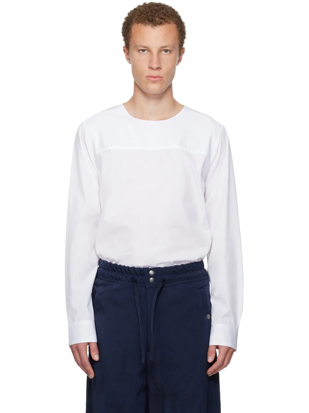 Cotton poplin shirt. · Paneled construction · Round neck · Buttoned barrel cuffs · Four-button placket at back collar Supplier color: White 100% cotton. Made in Hungary 252358M192021