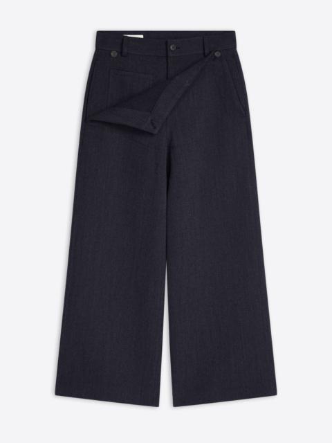 Regular fit wide leg sailor pants with buttonable front flap, in riding wool. DETAILS - 100% Wool. - Buttonable front flap. - Loose fit. Mid rise. Wide leg. Front closure. Side slit pockets. Back welt pockets. - Ref: 252-020983-2197 SIZE AND FIT Model is 189 cm / 74.5 inches and wears size 46.