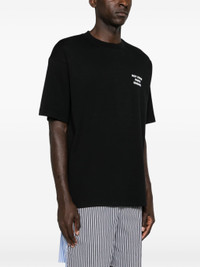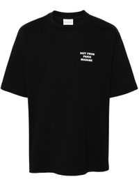 black cotton jersey texture slogan print to the chest and rear crew neck drop shoulder short sleeves straight hem - chest: 118.0 centimetres, sleeve length: 22.0 centimetres, length: 68.0 centimetres, shoulder width: 56.0 centimetres - Color: BLACK - Made in: Portugal - Designer Style ID: PERM-TS203 CO002 BLACK Composition and care Cotton: 100.0%