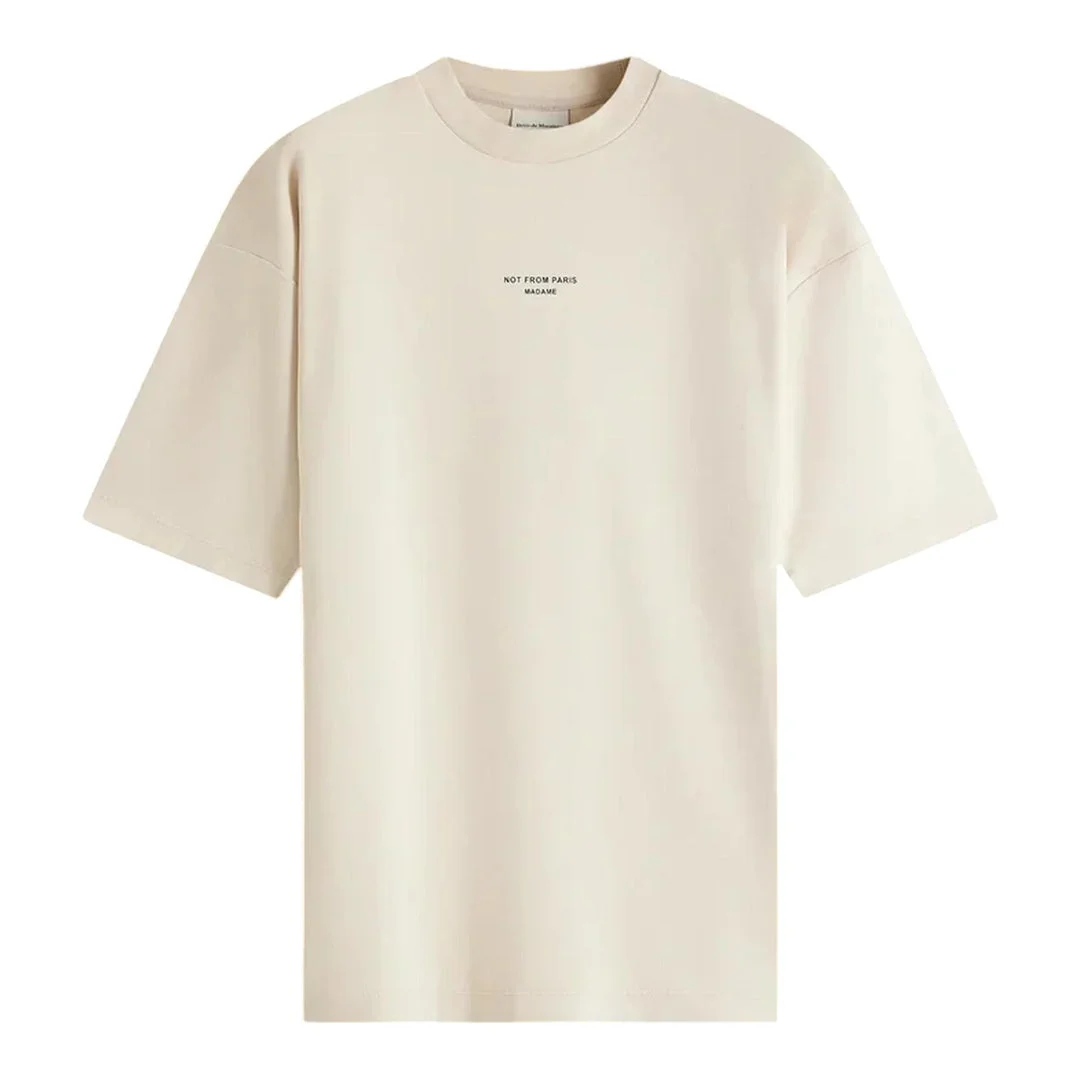 600064978OWT00M / PERM-TS202-CO002-MT/00/MT - Oversized relaxed fit - Crew neck construction - Short sleeves - Subtle chest text branding - Premium cotton jersey - Ribbed collar and cuffs The Drole de Monsieur Classic Slogan T-Shirt delivers contemporary French streetwear with minimalist branding and elevated construction. Crafted from premium cotton in soft beige with subtle 'Not From Paris Madame' text detailing across the chest. The oversized fit and premium hand-feel create a sophisticated take on everyday essentials.