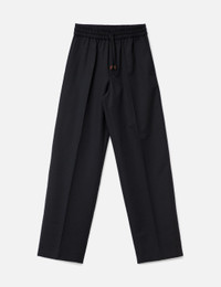 - Drole de Monsieur - Pantalon Droit Laine - Made of virgin wool blended fabric - Elasticated waistband - Drawstring waist with embossed mirrored 'D' leather tips - Two Italian pockets - Two back raglan pockets with button - Made in Europe - Color: Black - Material: 45% Virgin Wool, 55% Polyester - See more Pants and Clothing - Model wears size M - Model measures: Height 189cm, Chest 33”/84cm, Waist 27”/68.6cm, Hip 36”/91.4cm - Vendor Code: J-BP191-PL127-BL