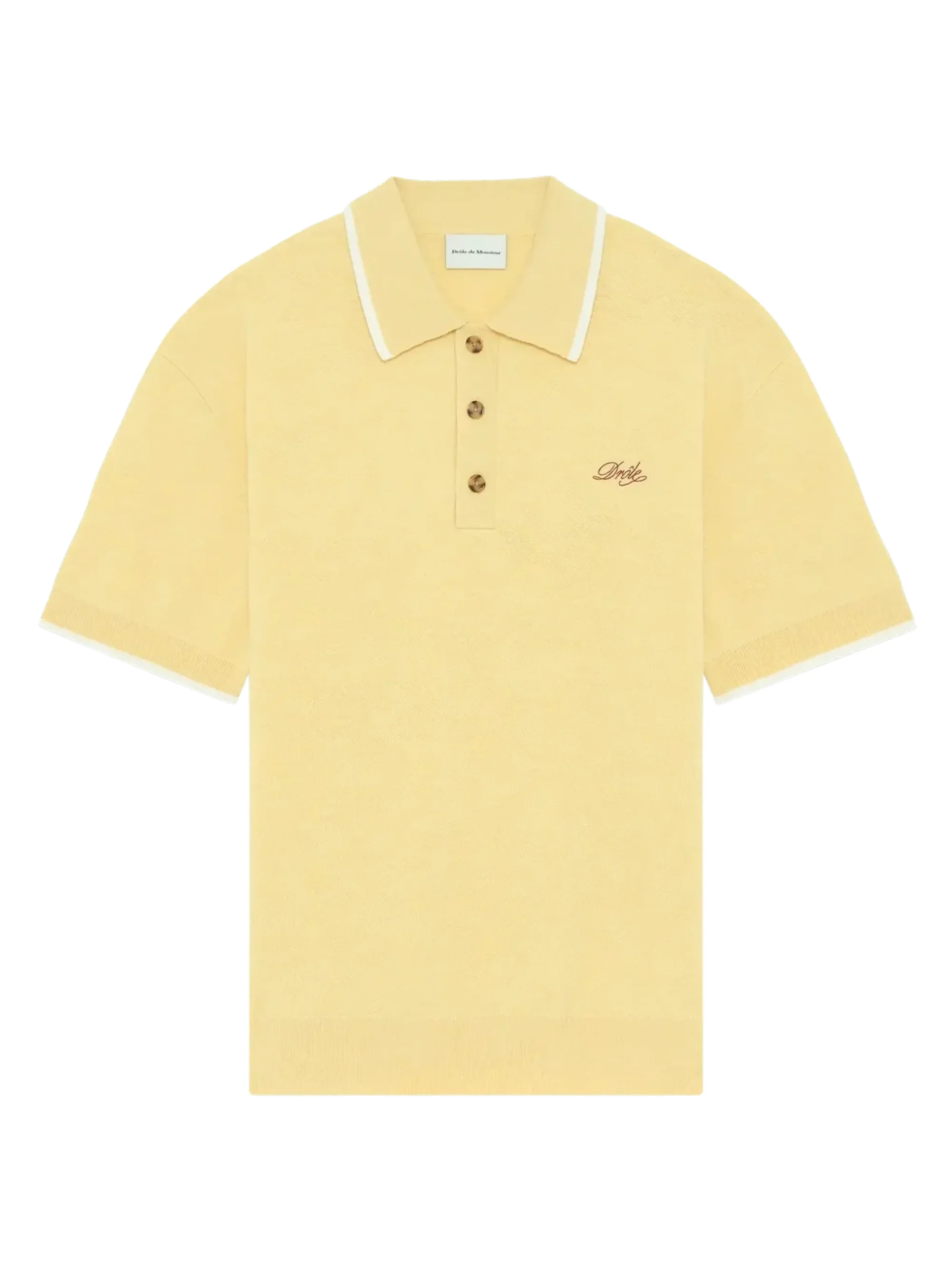 Polo shirt with logo [ SKU: 11458910490 ] The Polo shirt with logo by DROLE DE MONSIEUR epitomizes modern sophistication. This garment features a refined design enhanced by an iconic logo, making it a versatile addition to any wardrobe. Perfect for both casual outings and semi-formal events, this polo can be effortlessly styled with tailored trousers or your favorite denim. Its unique aesthetic ensures you make a lasting impression, whether at brunch or a business meeting. Elevate your style with this essential piece that seamlessly blends comfort and elegance. Composition 100% MERINO Reference JPO194WO007LIGHTYELLOW Made in China