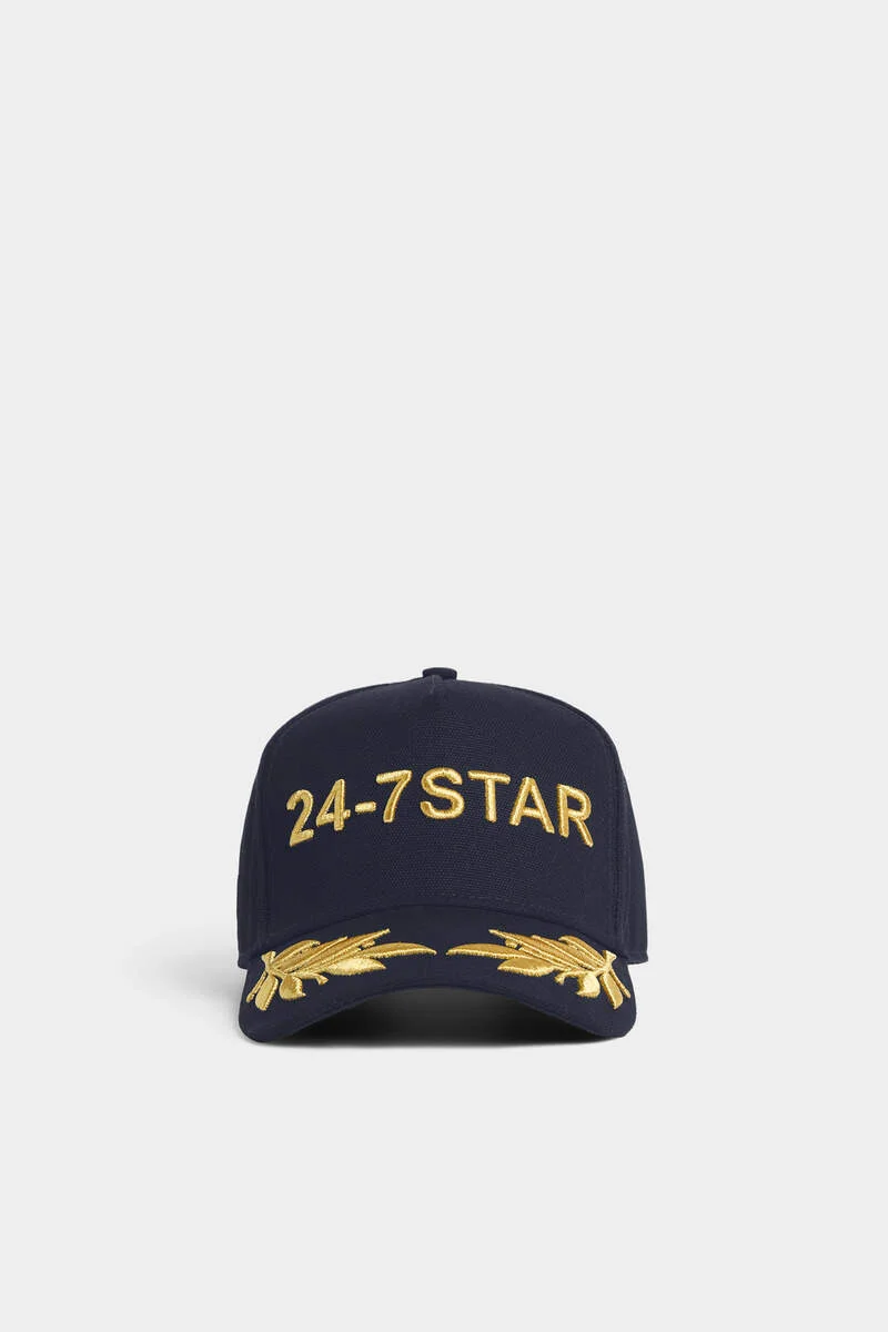 - PRODUCT ID : BCW075400300001M1503UN - MADE FROM COTTON GABARDINE - FRONT EMBROIDERED 24-7 LETTERING - EMBROIDERED FOLIAGE DETAILING ON THE PEAK - BACK EMBROIDERED DSQUARED2 LETTERING - ADJUSTABLE STRAP PRIMARY FABRIC: 100% COTTON; LINING: 65% POLYESTER, 35% COTTON As seen modelled by Naomi Campbell on the FW03 runway, this archival cap makes a statement all day, every day. Detailed with raised embroidery in glistening lurex thread on the front, back and peak.