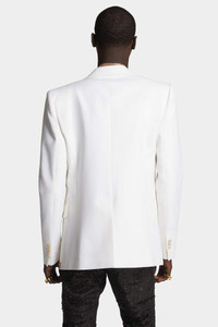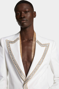 - PRODUCT ID : S71BN0980S36606100 - MADE FROM COTTON-SILK - SINGLE-BREASTED - PEAK LAPELS - FLAP POCKETS - BUTTONED CUFFS - METAL STUDDED TRIMS PRIMARY FABRIC: 68% COTTON, 32% SILK Discover Dsquared2's take on modern evening glamour. Crafted from a luxe cotton-silk blend, this jacket celebrates the dapper lines of its peak lapels with edgy metal studs. Throw on over a collared shirt and smart trousers.