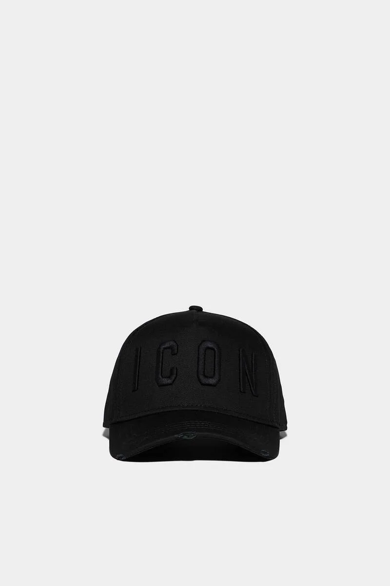 - PRODUCT ID: BCM400105C00001M084 - COTTON GABARDINE BASEBALL CAP - DESTROYED DETAILING - TONAL EMBROIDERED "ICON" LETTERING ON THE FRONT - TONAL EMBROIDERED "DSQUARED2" LETTERING ON THE BACK - REAR ADJUSTABLE STRAP - MADE IN CHINA 100% COTTON Stand out from the crowd with the Dsquared2 Be Icon baseball cap. Made from 100% cotton gabardine, this cap is both comfortable and durable. The destroyed detailing adds a trendy touch, while the embroidered "ICON" lettering on the front showcases the brand's iconic style. The embroidered "DSQUARED2" lettering on the back adds a touch of luxury. The rear adjustable strap ensures a perfect fit for any head size. Whether you're hitting the streets or the baseball diamond, this cap is sure to turn heads.