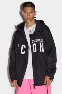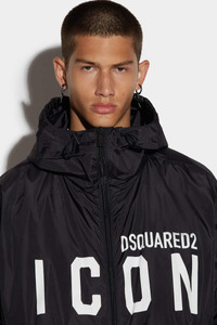 - PRODUCT ID: S79AM0049S53817900 - NYLON WINDBREAKER - REGULAR FIT - STAND COLLAR WITH DRAWSTRING HOOD - TWO-WAY ZIP CLOSURE - SIDE WELT POCKETS - ELASTICATED CUFFS - ELASTICATED DRAWSTRING HEM - "DSQUARED2 ICON" FRONT PRINT - MADE IN CHINA PRIMARY FABRIC: 100% POLYAMIDE-NYLON. LINING: 100% POLYAMIDE-NYLON. POCKET LINING: 100% POLYAMIDE-NYLON This sleek black windbreaker from Dsquared2 features a front zip closure, an adjustable drawstring hem, and a convenient hood. The bold white print of the iconic "Dsquared" logo on the front adds a touch of sophistication to this versatile jacket. Pair it with jeans and sneakers for a casual look, or dress it up with chinos and loafers for a night out.