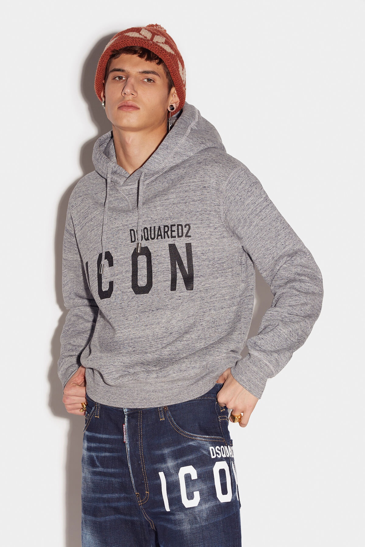 - PRODUCT ID: S79GU0085S25477860M - COTTON SWEATSHIRT - REGULAR FIT - DRAWSTRING HOOD - LONG SLEEVES - FRONT "DSQUARED2 ICON" PRINT - MADE IN ITALY MAIN FABRIC: 100% COTTON. SECONDARY FABRIC: 94% COTTON, 6% ELASTANE-SPANDEX THE MODEL IS 6'2" TALL AND WEARS A SIZE M
