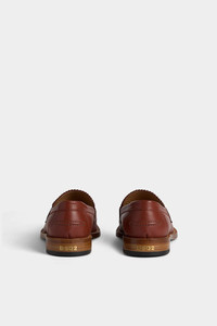 - PRODUCT ID: LOM0034251026245080 - LEATHER PENNY LOAFERS - 3-CM HEEL WITH LOGO ON THE BACK - STITCHED REAL LEATHER SOLE - LEATHER LINING - LEATHER INSOLE WITH LETTERING - MADE IN ITALY - UPPER: 100% CALF LEATHER - LINING: 100% CALF LEATHER Dsquared2 adds its accent in the interpretation of the timeless penny loafer. This hammered leather style has the iconic strap sewn onto the back of the shoe. It is the perfect loafer to wear both with preppy style outfits and with creative and unconventional looks.