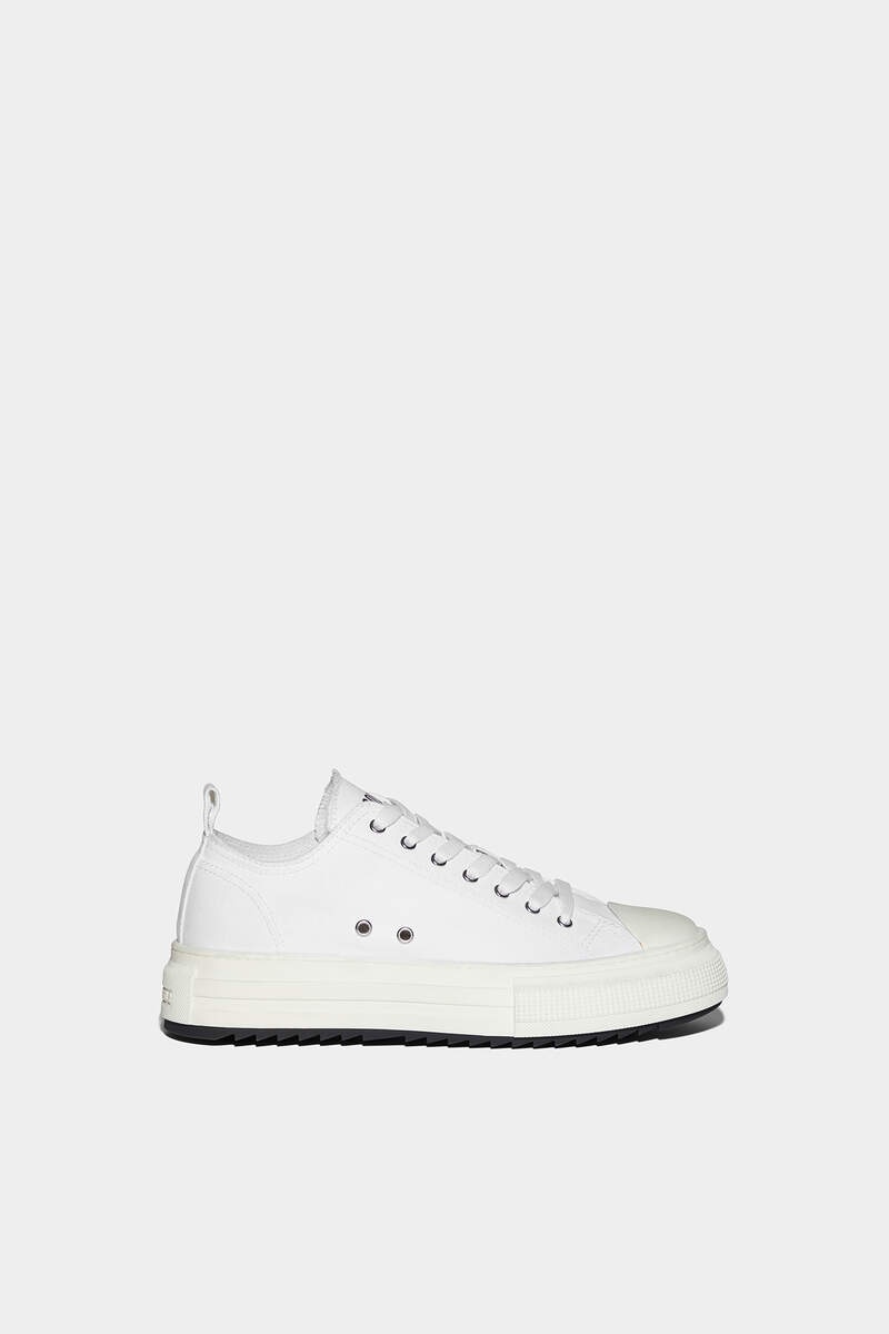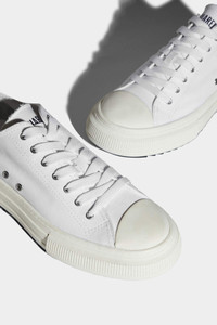- PRODUCT ID: SNM029025406362M2653 - COTTON CANVAS SNEAKERS - CUPSOLE - "DSQUARED2" PRINT ON THE TONGUE - PULL TAB - EMBOSSED "DSQUARED2" LETTERING ON THE MIDSOLE - MADE IN ITALY UPPER: 100% ORGANIC COTTON. LINING: 60% COTTON, 40% LEATHER. SOLE: 50% RECYCLED POLYURETHANE, 50% POLYURETHANE Elevate your shoe game with these stylish and sophisticated Dsquared2 men's sneakers. The monochrome design adds a sleek and modern touch, while the front sole features a distinctive ribbed pattern. The upper has two studs on the eyelet, adding a touch of edge to these shoes. The discreet "Dsquared2" branding on the tongue adds a subtle touch of branding. Pair these sneakers with slim-fit chinos and a button-down shirt for a polished, sophisticated look.