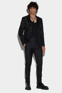- PRODUCT ID: S74FT0436S39408900 - WOOL AND SILK SUIT - SLIM FIT - PEAK LAPELS - SINGLE-BREASTED BUTTON CLOSURE - WELT CHEST POCKET - SIDE FLAP POCKETS - BUTTONED CUFFS - REAR VENT - TROUSERS WITH PRESSED PLEATS AND TURN-UP HEMS - MADE IN ITALY MAIN FABRIC: 65% VIRGIN WOOL, 35% SILK. SECONDARY FABRIC: 100% SILK. LINING: 100% POLYESTER. SLEEVE LINING: 60% VISCOSE-RAYON, 40% POLYESTER. POCKET LINING: 100% COTTON The model is 6'2" tall and wears a size 38