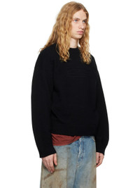 Knit cotton sweater. · Rib knit crewneck, hem, and cuffs · Logo embossed at chest · Dropped shoulders Supplier color: Black 100% cotton. Made in Peru 242148M201001