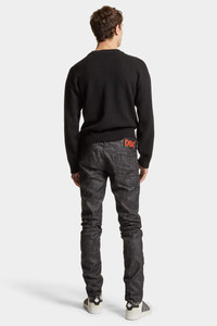 - PRODUCT ID: S74LB1542S30357900 - STRETCH DENIM 5 POCKET PANTS - WASH: SIMPLY WASHED - SINGLE BUTTON WAISTBAND - LOGOED LABEL SEWN ON THE FLY - LEATHER LABEL SEWN ON THE BACK - TWO-NEEDLE STITCHING - FIT: LOW-RISE SLIM - MADE IN ITALY FABRIC 98% COTTON, 2% ELASTANE APPLICATION: 100% CALF LEATHER Slim-fit black denim, low rise jeans. The Black Rinse wash version is recommended for looks easy to pair with fitted T-shirts or cotton poplin shirts.