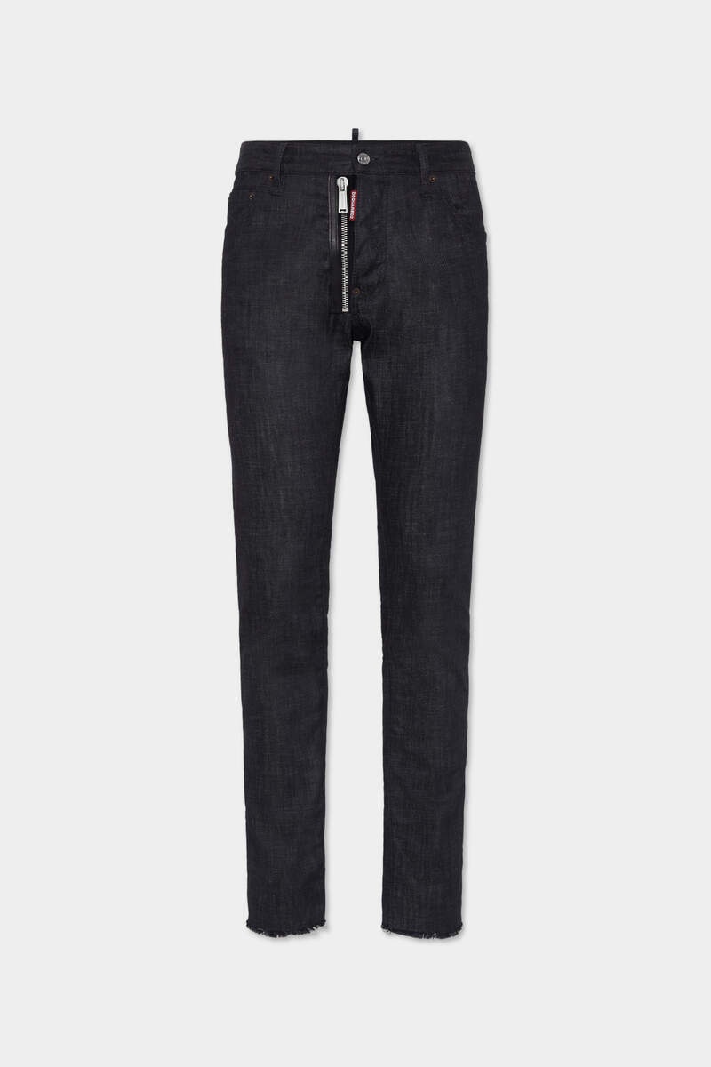 - MADE FROM STRETCH COTTON DENIM - BLACK RINSE WASH - SLIM FIT - STRAIGHT LEG - FIVE-POCKET STYLE - FRONT ZIP DETAIL - FRAYED CUFFS - RED DSQUARED2 LABEL - DSQUARED2 PATCH PRIMARY FABRIC: 98% COTTON, 2% ELASTANE-SPANDEX; POCKET LINING: 65% POLYESTER, 35% COTTON; SECONDARY FABRIC: 100% CALFSKIN; APPLICATION: 100% CALFSKIN No off-duty edit is complete without a classic straight-leg jean. This black rinse-wash pair updates the five-pocket style with a front zip detail. Raw-cut cuffs give them a cool lived-in look: just add a plain white tee and sneakers.