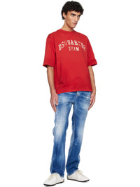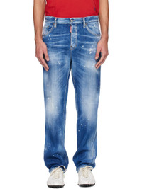 Stretch denim jeans. · Fading, distressing, and whiskering throughout · Paint splatter printed throughout · Straight-leg · Belt loops · Five-pocket styling · Logo flag at button fly · Logo patch at back waistband · Contrast stitching in tan Supplier color: Navy Blue Body: 98% cotton, 2% elastane. Trim 1: 65% polyester, 35% cotton. Made in Italy 252148M186038