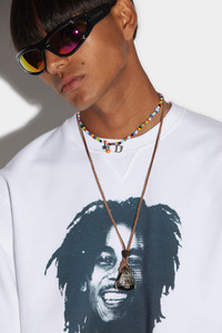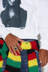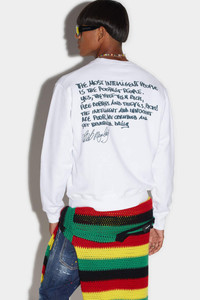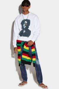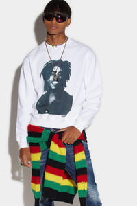 - PRODUCT ID: S71GU0569S25551100 - COTTON CREW-NECK SWEATSHIRT - REGULAR FIT - BOB MARLEY PRINT ON THE FRONT AND LETTERING ON THE BACK - MADE IN ITALY PRIMARY FABRIC: 100% COTTON. SECONDARY FABRIC: 99% COTTON, 1% ELASTANE-SPANDEX Rock the laid-back look in this Bob Marley Cool sweatshirt. Worked in soft, plain-dye jersey fabric, this version comes with a visible stitching detail and Bob Marley photo print on the front. The back features a quote by the legendary reggae singer. Great for making a statement at the beach or on casual nights out. Pair with this season's shorts or jeans and a Rasta hat for cool, retro vibes.