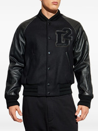 logo-patch bomber jacket Highlights - Black - Long sleeves - Press stud fastening - Ribbed hem - Logo patch Imported Composition Virgin Wool 79%, Polyamide 20%, Elastane 1% Washing instructions Dry Clean Only