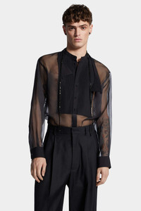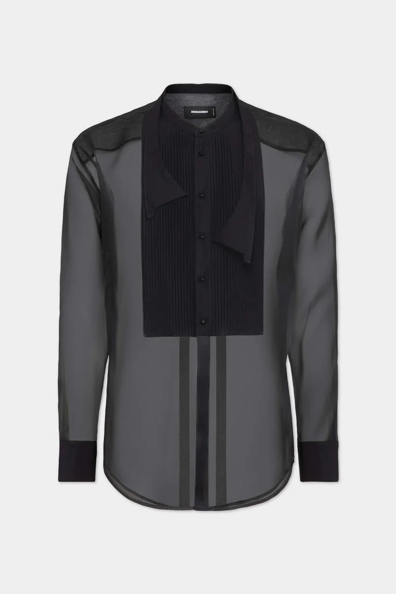 - PRODUCT ID : S74DM0925S76445900 - MADE FROM SHEER SILK ORGANZA - PLEATED PLASTRON - BUTTON CLOSURE - BUTTONED CUFFS - FAKE BOW TIE DETAIL PRIMARY FABRIC: 100% SILK; SECONDARY FABRIC: 100% COTTON A sultry twist on black-tie elegance. This shirt spices up the classic dinner shirt in daring sheer silk organza. An undone bow tie detail drapes loosely over the shoulders for a care-free touch.