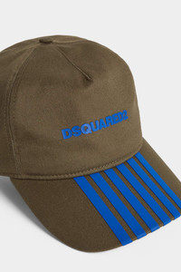 - PRODUCT ID : BCM093405C00001M1174UN - MADE FROM COTTON GABARDINE - SPORTY STRIPES ON THE PEAK - FRONT DSQUARED2 PRINT - SIDE DEAN & DAN PRINT - BACK MAPLE LEAF PRINT - ADJUSTABLE STRAP PRIMARY FABRIC: 100% COTTON; LINING: 65% POLYESTER; 35% COTTON Tap into your sporty soul in this striped peak baseball cap, featuring the names of our founders on the side and our signature maple leaf on the back. Pair with distressed denim and high-top sneakers for ultimate off-duty vibes.