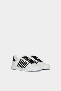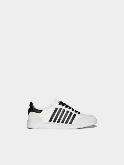 - PRODUCT ID: SNM018111100001M1365 - LEATHER SNEAKERS WITH SUEDE DETAILS - CONTRAST SIDE BANDS - "DSQUARED2" PRINT ON THE TONGUE - MAPLE LEAF PRINT ON THE HEEL TAB - EMBOSSED LETTERING ON THE HEEL - CONTRAST LACES - MADE IN ITALY UPPER: 100% LEATHER. LINING: 100% LEATHER. SOLE: 100% ELASTODIENE Channel your inner Canuck with these shoes by DSQUARED2. Featuring a signature maple leaf motif and stripes, the Boxer Sneakers are the perfect way to rep some Canadian pride. What more could you want – pick up a pair today to complete your look.