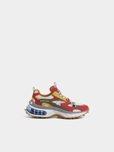 - MADE FROM MESH AND SUEDE LEATHER - HIKING-STYLE LACES - CHUNKY SOLE - PULL TABS - DSQUARED2 PATCH ON THE TONGUE - SIDE DEAN & DAN LETTERING UPPER: 60% CALFSKIN, 40% POLYESTER; LINING: 80% POLYESTER, 20% CALFSKIN; SOLE: 65% POLYESTER, 25% RUBBER, 10% PVC The chunky trainer is here to stay. Crafted from a combination of mesh and suede leather, this sneaker fastens with hiking-style laces. Signature "Dean & Dan" lettering on the side marks every stride with Dsquared2 attitude.