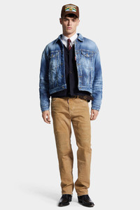 - PRODUCT ID : S74LB1774S39781132 - MADE FROM STRETCH COTTON BULL DENIM - GARMENT-DYED - REGULAR FIT - STRAIGHT LEG - FIVE-POCKET STYLE - DISTRESSED FINISH - RED DSQUARED2 LABEL - DSQ2 MAPLE LEAF PLAQUE PRIMARY FABRIC: 98% COTTON, 2% ELASTANE-SPANDEX; POCKET LINING: 100% COTTON