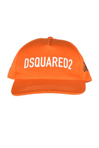 Orange cotton cap Dsquared2. White logo printed in the center. Black inscription on the side. Black embroidered inscription on back. Adjustable cap. Made in Italy.