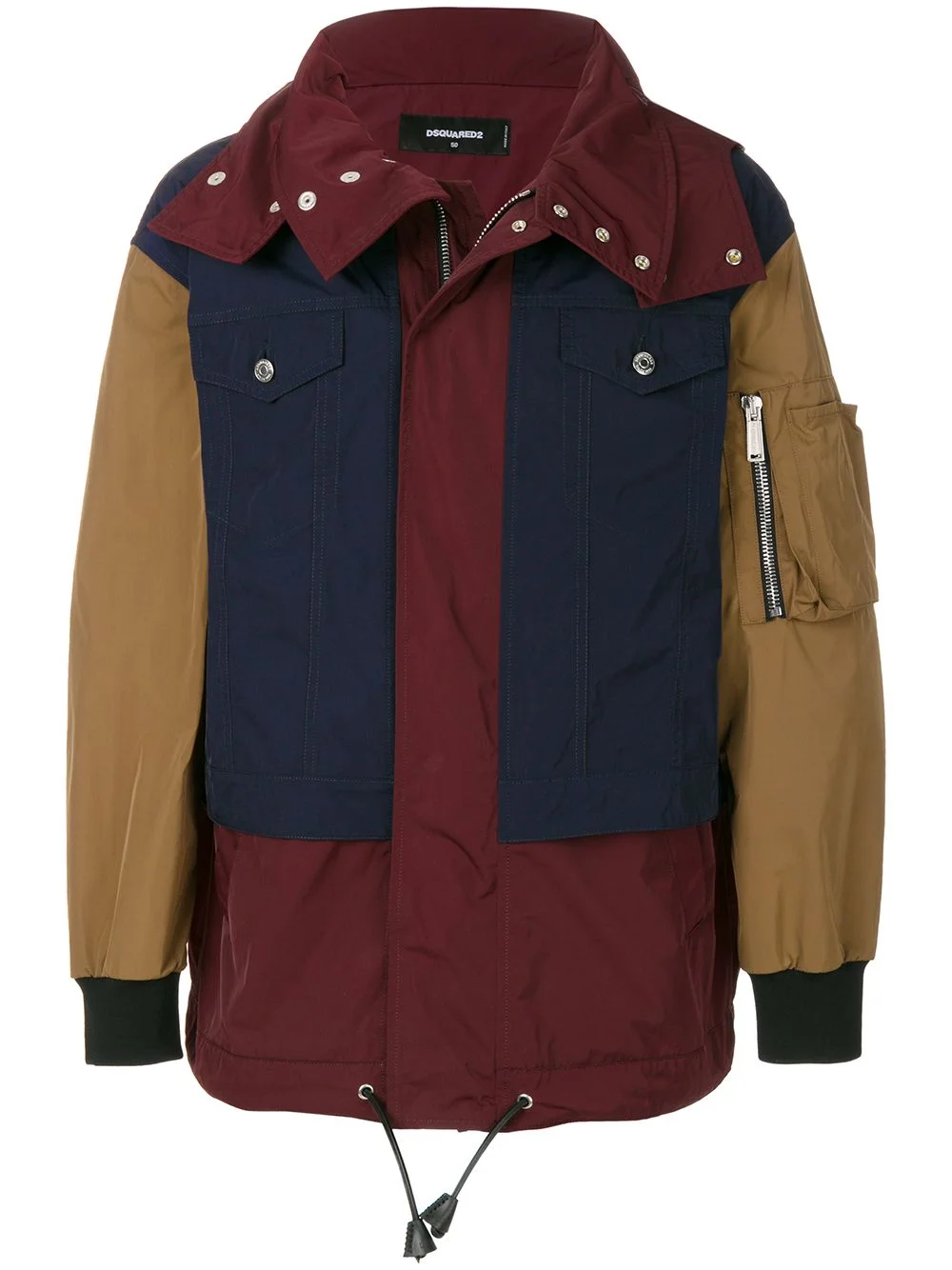 casual zipped jacket As well as presenting a collection of eclectic styles and standout silhouettes for DSQUARED2’s SS18 collection, the Caten twins prove that they are also expert in fashioning timeless wardrobe staples for the modern woman/gentleman. Crafted in Italy from navy blue, burgundy and caramel brown cotton, this casual zipped jacket from DSQUARED2 features a hood, a front zip fastening, two chest pockets, long sleeves, ribbed cuffs, a drawstring waist and a panelled colour block design. Made in Italy Composition Outer: Polyester 100%, Viscose 95%, Spandex/Elastane 5% Lining: Cotton 100% SIZE & FIT Model measurements Height 6 ft 2 in(1.87 m) Bust/Chest 37.79 in(96 cm) Hips 37.79 in(96 cm) Waist 30.31 in(77 cm) Washing instructions Dry Clean Only