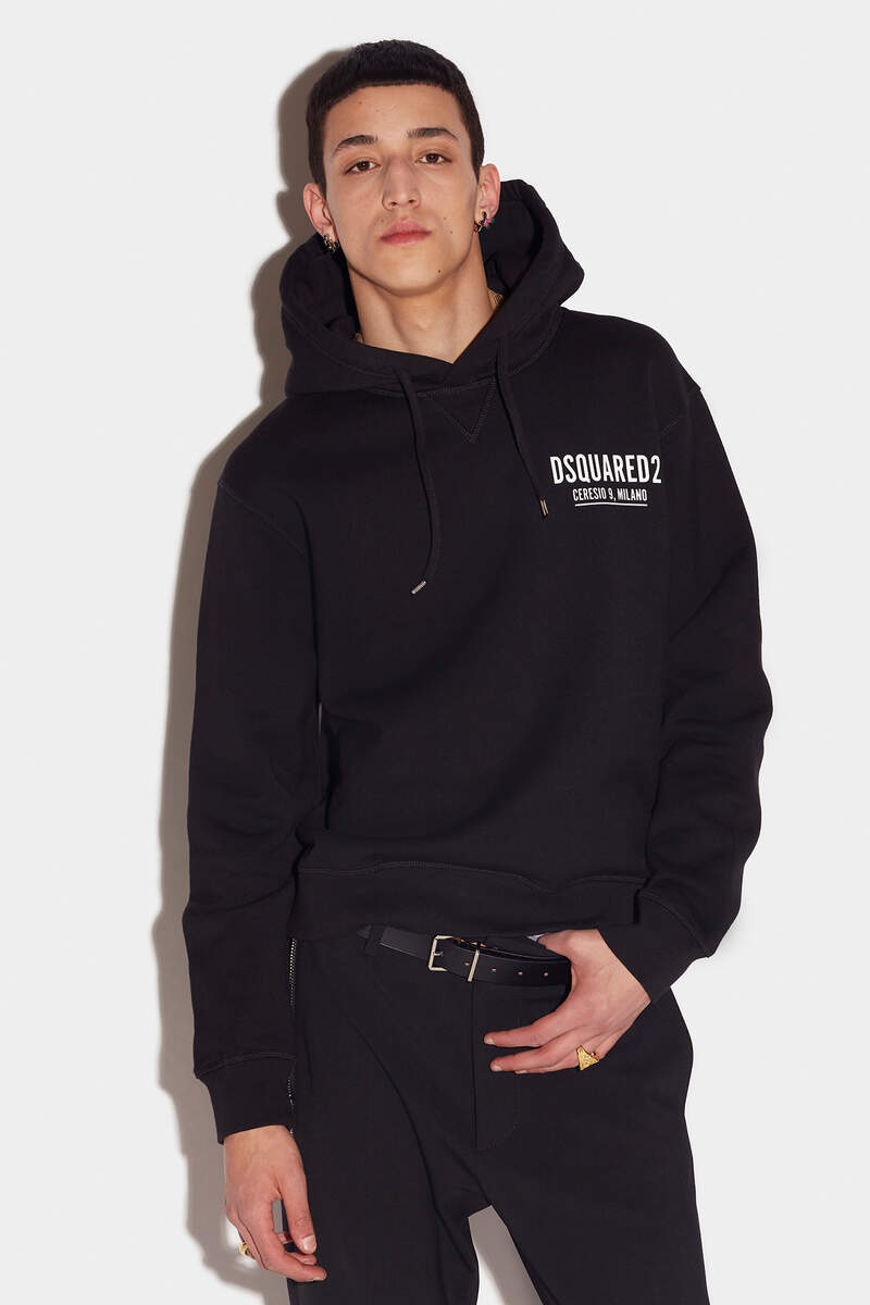 - PRODUCT ID: S71GU0451S25516900 - COTTON SWEATSHIRT - REGULAR FIT - DRAWSTRING HOOD - "DSQUARED2 CERESIO 9, MILANO" PRINT ON THE CHEST - MADE IN ROMANIA PRIMARY FABRIC: 100% COTTON. SECONDARY FABRIC: 99% COTTON, 1% ELASTANE-SPANDEX The model is 6'2" tall and wears a size M The Ceresio 9 Cool Hoodie is the perfect staple to add to your wardrobe. This block-colour hoodie is finished with a small logo print on the chest for a subtle touch of class. Plus, it’s super snug, making it ideal for when the temperature drops.