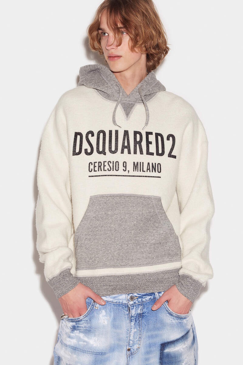 - PRODUCT ID: S71GU0465S25555961 - LYOCELL AND COTTON SWEATSHIRT - REGULAR FIT - DRAWSTRING HOOD - POUCH POCKET - FRONT "DSQUARED2 CERESIO 9, MILANO" PRINT - MADE IN ITALY PRIMARY FABRIC: 85% COTTON , 15% LYOCELL. SECONDARY FABRIC: 55% COTTON, 42% LYOCELL, 3% ELASTANE-SPANDEX When the temperature drops, keep snug with the Dsquared2 Hoodie. This block-colour hoodie is finished with contrasting pockets, hood, hem and cuffs to pique your interest. Plus, the bold logo print on the vibe gives it a college sweater vibe.