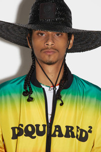 - PRODUCT ID: S71AN0413S76686001S - MULTICOLOURED NYLON BOMBER JACKET - REGULAR FIT - BOMBER COLLAR - TWO-WAY ZIP CLOSURE - SIDE POCKETS - RIBBED COLLAR, CUFFS AND HEM - FRONT "DSQUARED2" PRINT - MADE IN ITALY PRIMARY FABRIC: 100% POLYESTER. LINING: 100% POLYAMIDE-NYLON. POCKET LINING: 100% COTTON Stand out from the crowd in this Bob Marley-inspired classic bomber jacket. Worked in a lightweight technical fabric, it features wide bands in Rastafarian colours. Features a vintage style Dsquared2 logo across the front. Wear with this season's distressed Dsquared2 jeans and a white tee for laid-back retro vibes.