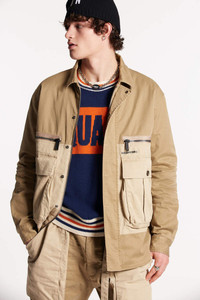 - PRODUCT ID: S74AM1401S39021808 - STRETCH COTTON JACKET - REGULAR FIT - SHIRT COLLAR - ZIP CHEST POCKETS - BUTTONED FLAP SIDE POCKETS - BUTTONED CUFFS - TWO-WAY ZIP AND SNAP BUTTON CLOSURE - METAL "DSQUARED2" DETAIL - MADE IN ITALY 97% COTTON, 3% ELASTANE-SPANDEX. LINING: 100% POLYESTER. PADDING: 100% POLYESTER. POCKET LINING: 100% COTTON