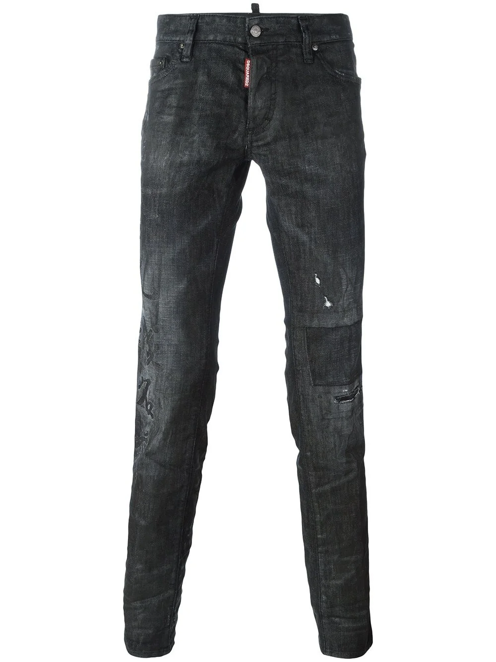 'Clement' jeans Black cotton blend 'Clement' jeans from DSQUARED2 featuring a front button fastening, a waistband with belt loops, a five pocket design, distressed effects, a bleached effect, a branded rear patch and a regular length. Made in Italy Composition Cotton 98%, Spandex/Elastane 2% SIZE & FIT Model measurements Height 6 ft 2 in(1.87 m) Bust/Chest 37.79 in(96 cm) Hips 37.79 in(96 cm) Waist 30.31 in(77 cm) Washing instructions Machine Wash