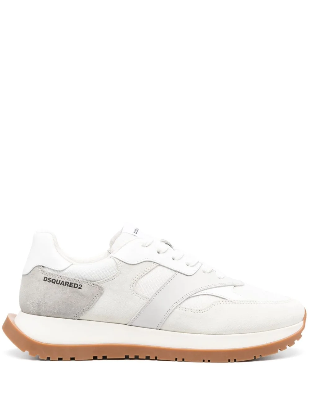 colour-block panelled leather sneakers Highlights - White - Calf leather - Colour-block panelled design - Logo print to the side - Front lace-up fastening - Branded insole - Flat rubber sole Made in Italy Composition Lining: Calf Leather 100%, Fabric 100% Outer: Fabric 100%, Calf Leather 100% Sole: Rubber 100% SIZE & FIT Measurement HEEL 1.96 in(5 cm) Sole height 1.18 in(3 cm)