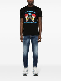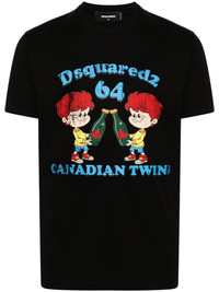 Cool Fit cotton T-shirt Dsqaured2 was founded in 1995 by Canadian twin brothers Dean and Dan Caten with the mission to mix bold designs and refined craftsmanship. The founders are depicted in a cartoonish print at the front of this black cotton T-shirt, along with their birth year and logo print. Highlights - Black - Cotton - Jersey texture - Ribbed crew neck - Short sleeves - Logo and graphic print to the front - Straight hem Made in Italy Composition Cotton 100% SIZE & FIT Model measurements Height 6 ft 0 in(1.84 m) Bust/Chest 35.82 in(91 cm) Hips 37 in(94 cm) Waist 28.34 in(72 cm) FittingInformation Designed for a slim fit, offering a comfortable fit that sits just away from the body Made from a midweight non-stretch fabric, this piece offers minimal elasticity when worn This piece fits true to size – take your usual size Washing instructions Machine Wash