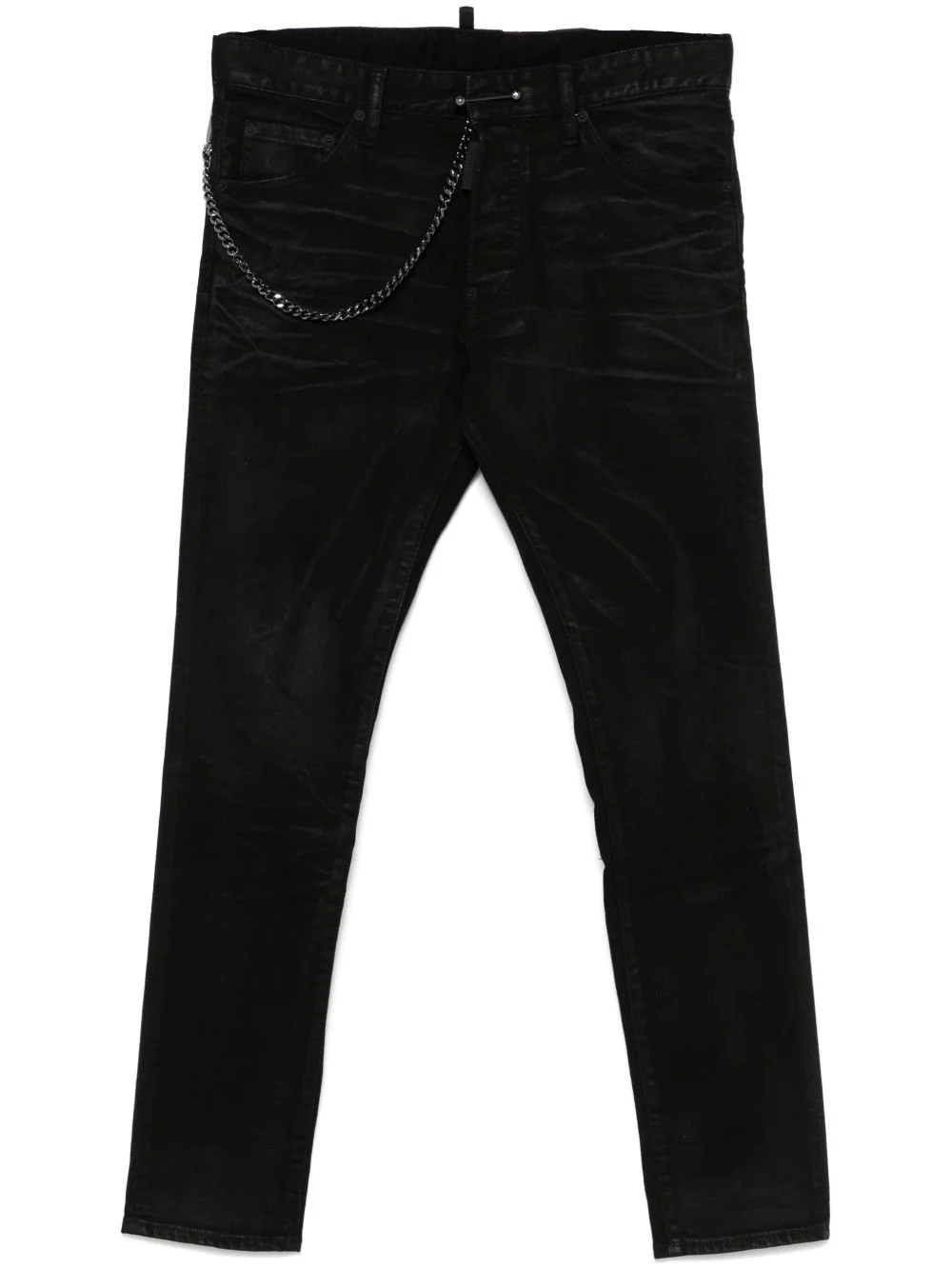 chain-detailed trousers Highlights - Black - Button fly fastening - Belt loops - Classic five pockets - Logo patch to the rear Made in Italy Composition Outer: Cotton 98%, Spandex/Elastane 2% Lining: Polyester 65%, Cotton 35% SIZE & FIT Model measurements Height 6 ft 2 in(1.87 m) Bust/Chest 38.97 in(99 cm) Hips 37.99 in(96.5 cm) Waist 29.52 in(75 cm) FittingInformation Designed for a slim fit, offering a comfortable fit that sits just away from the leg Made from a midweight stretch fabric, this piece offers elasticity and flexibility when worn