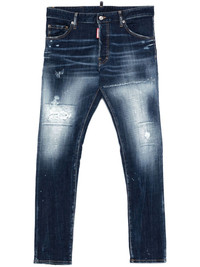 Cool Guy jeans Highlights - Navy blue - Concealed fly and button fastening - Belt loops - Classic five pockets - Logo patch to the rear Made in Italy Composition Outer: Calf Leather 100%, Cotton 99%, Elastane 1% Lining: Polyester 65%, Cotton 35% SIZE & FIT Model measurements Height 6 ft 2 in(1.89 m) Bust/Chest 35.03 in(89 cm) Hips 38.18 in(97 cm) Waist 29.92 in(76 cm) FittingInformation Designed for a slim fit, these jeans offer a comfortable fit that sits just away from the leg Constructed from stretch denim, this piece offers a stretch fit with durability